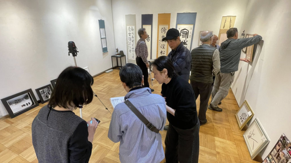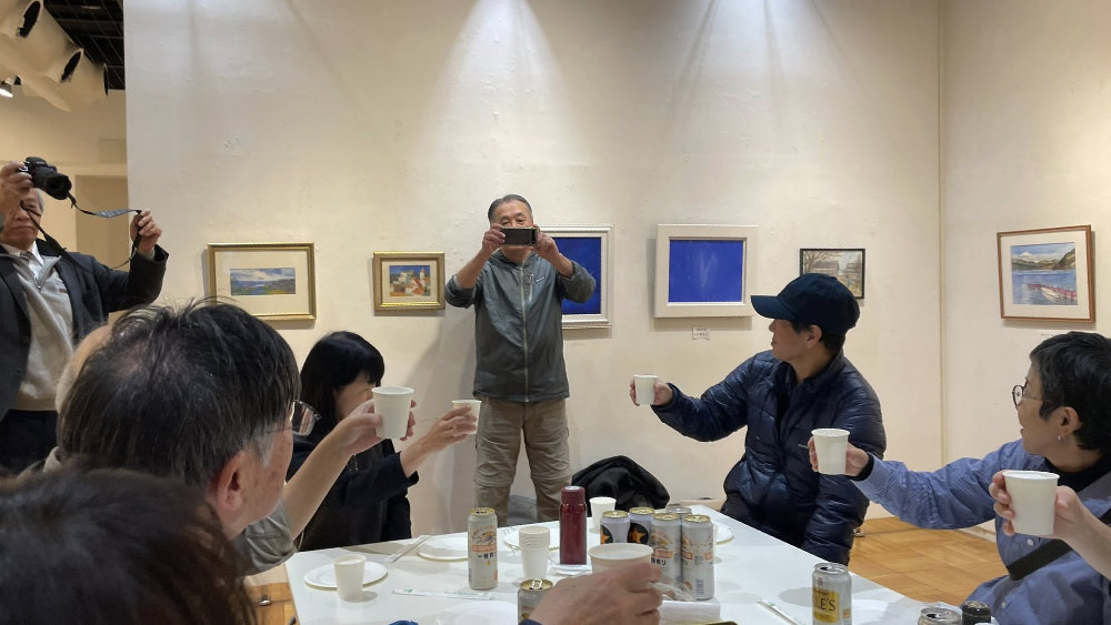 絵画アリ、書アリ、写真アリ、彫刻アリ、モダンアート アリ、音楽や朗読イベント アリ…なんでもござれの楽しい芸術祭、いよいよ11日から16日まで開催です。 - 飾り付けの後は、参加者懇親会。各自からの作品紹介や質疑応答などアルコールも入って楽しい時間を過ごしました。
