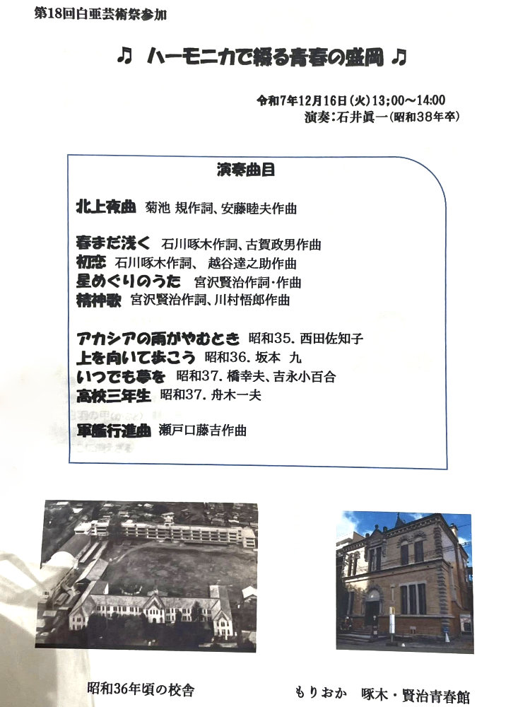 - 16日 石井眞一さん「ハーモニカで綴る青春の盛岡」