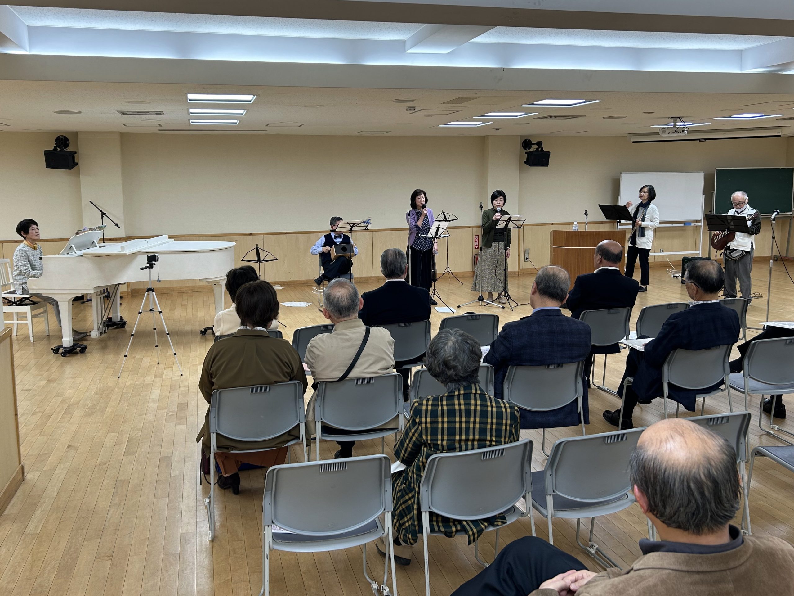 ソロの歌唱ばかりでなくデュエット、アンサンブルの他、ピアノフルート、チェロ等、器楽演奏も歓迎しています。