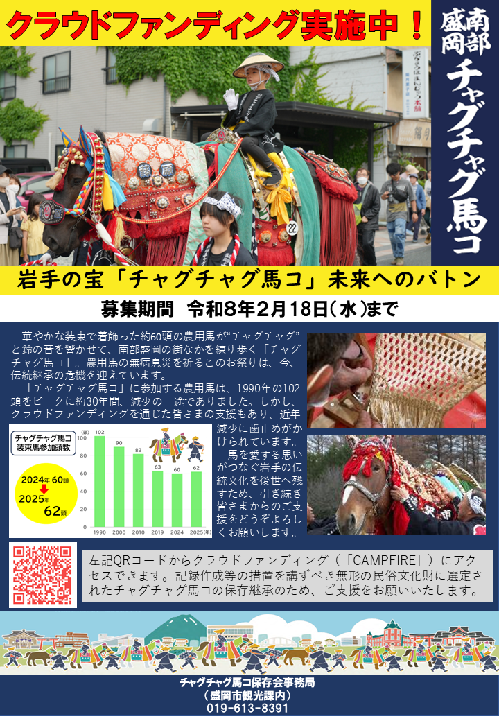 チャグチャグ馬コ保存会がクラウドファンデングを実施中です。